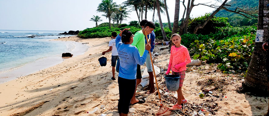 Niños y adolescentes que forman el grupo de ecolíderes entrenados por Fundación Islas de la Bahía (FIB) participan en limpiezas de playas en Utila. Foto: Staff Iguana Research and Breeding Station-(IRBS) Iguana Station
