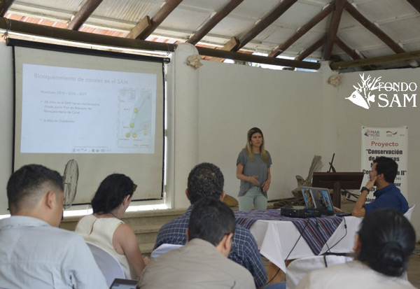 La oficial de proyectos II del Fondo SAM, Ximena Flamenco, presentó los antecedentes de la organización y los esfuerzos que esta ha impulsado en el área, en favor del Sistema Arrecifal Mesoamericano (SAM).