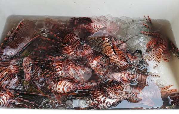 Peces león capturados en Punta de Manabique por colaboradores del CONAP. Foto: Juan Carlos Hernández/CONAP