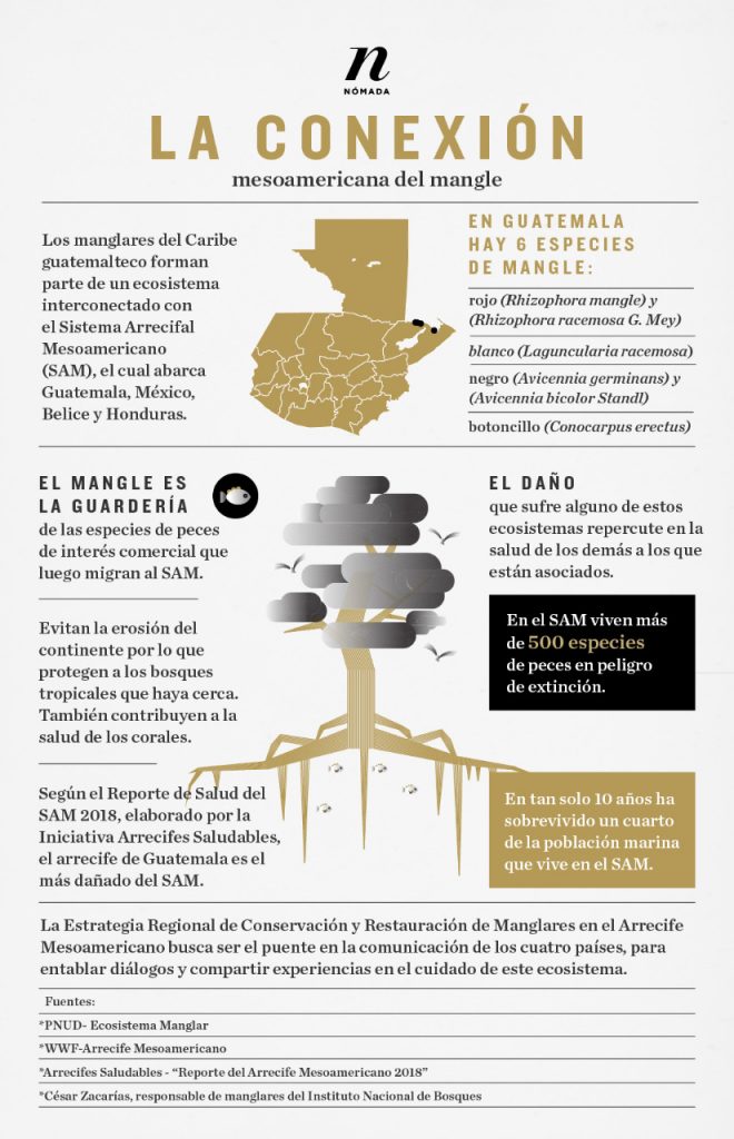 El ecosistema manglar de Guatemala está vinculado al de Honduras, Belice y México. Lo que le pase a uno le afecta al otro. En el Caribe guatemalteco hay actividades ilegales que destruyen una barrera natural y un sustento para familias que dependen del lugar. Nómada viajó al Lago de Izabal para comprobar tales amenazas y riesgos.